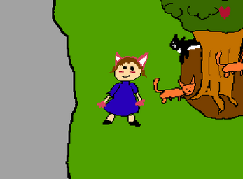 Part of the Famicase Sketchbook. I started this one and got it so cats could follow you after you "attacked" them. But then I made the mistake of drawing some incidental objects and thinking "you know, you should be able to walk behind and in front of those" and got sidetracked making that a reality. I had sort of rework how I did collision at a base level but now characters can walk in front of an behind thing!