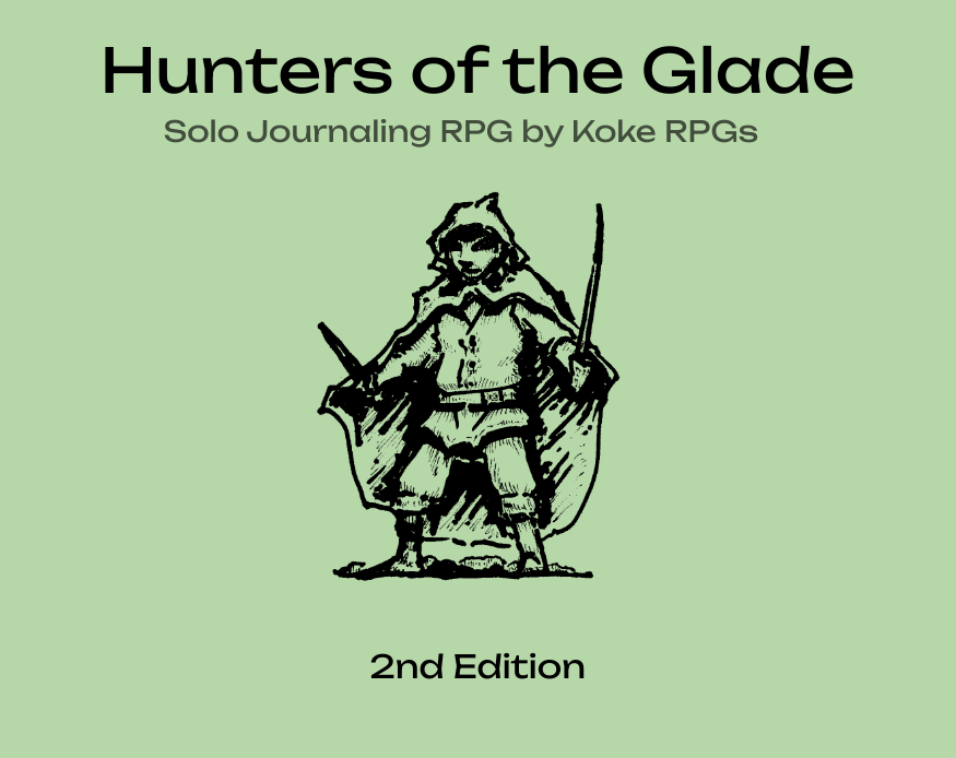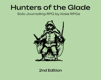 Hunters of the Glade is a solo journaling tabletop RPG, based on the 4d4s SRD, that uses a deck of cards to relive the memories of an Elven hunter through 4 distinct periods of their life: Training years (Growing up in the village as a teenager learning the art of hunting from the elders); Early hunting years (Being a hunter for a few years, hunting alone or in a group, and exploring the area); Experienced years (Leading a hunting party deep into the wilderness and encountering dangerous creatures, mysterious figures, and unexplored ruins as a Veteran Hunter); Elder years (Passing on your hunting skills and knowledge to the next generation).